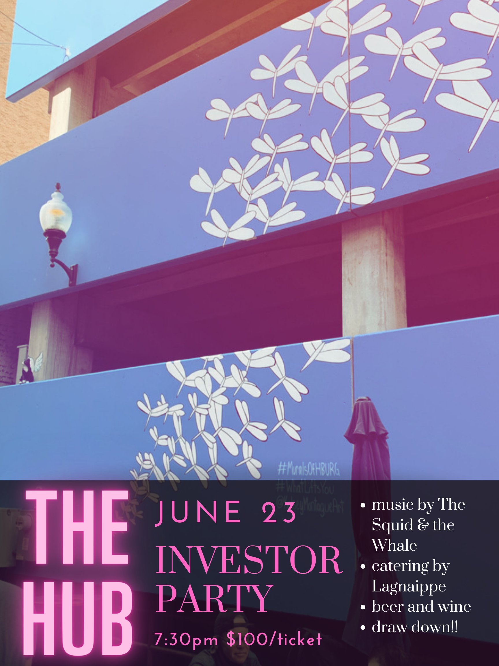 We are hosting an investor/interest party at a private residence. Join us for live music by The Squid & the Whale, hors d’ouevres by Lagnaippe Catering, and a “draw down”! Tickets now available.